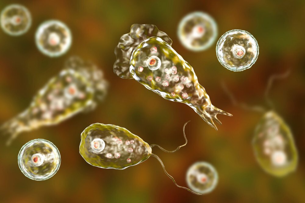 Житель американского штата Миссури искупался в озере Айова, и в его головной мозг – через нос – проникли одноклеточные амёбы Неглерия Фоулера, вызывающие первичный амёбный менингоэнцефалит. Болезнь начинается с недомогания, иногда с нарушений восприятия запахов и вкусов. Потом возникает сильнейшая головная боль, от которой не спасают никакие таблетки, лихорадка, тошнота и рвота, тугоподвижность шеи, судороги. Наконец, развиваются нарушения интеллекта, галлюцинации, и наступает смерть. С 1962 по 2021 год в США было зарегистрировано 154 случая заражения, выжили только 4 человека. К счастью, от человека к человеку первичный амёбный менингоэнцефалит не передаётся. Naegleria fowleri живёт в пресных водоёмах с тёплой водой (от 25 до 30 градусов по Цельсию). Встречается – вниманию отдыхающих! – по всему миру. В основном, в жарких странах с экваториальным и тропическим климатом, но из-за глобального потепления ареал обитания Неглерии Фоулера постепенно расширяется. Купайтесь только в местах, о
