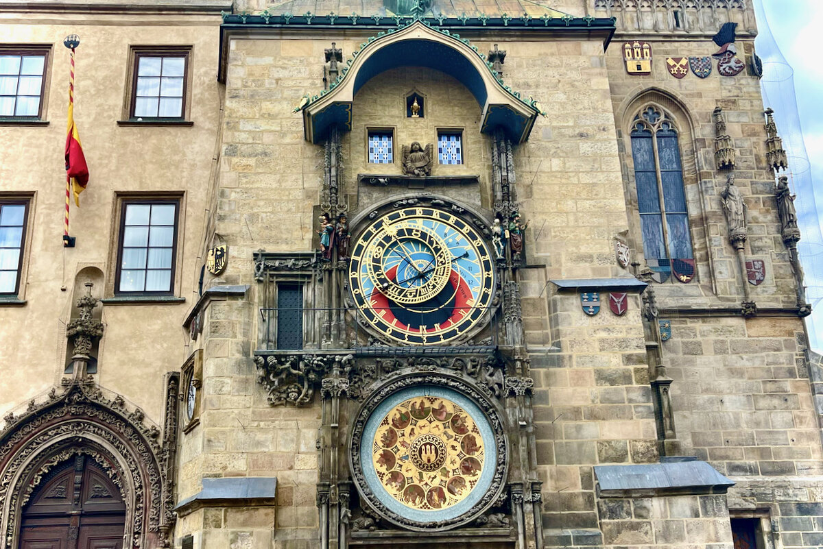 В последующие столетия Пражские куранты неоднократно останавливались, чинились, достраивались. Очень сильно они пострадали в 1945 году, когда немецкая армия расстреливала здание Староместской ратуши из зениток зажигательными снарядами. Последняя реставрация Орлоя завершилась в 2018 году, так что я могу показать вам часы во всей их красе и во всех ракурсах – как люди видят часы на ратуше, так и как часы видят людей у ратуши.