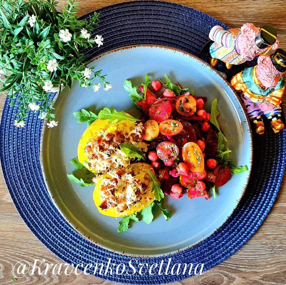 Выкладываем кусочек масла, солим и сверху выкладываем начинку. Ставим подрумяниться обратно в духовку на 5-10 минут.