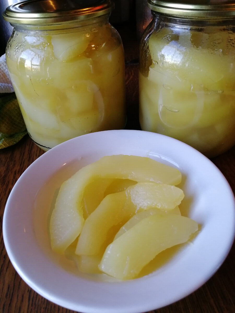 Кабачки получаются действительно сладкими, очень похожими по вкусу и цвету на ананасы. Я их смело кладу на отбивные - никто и не догадывается, что там не ананас. Итак, для приготовления нам нужно: Кабачки очищенные - 2 кг Сок ананасовый (можно самый дешёвый) - 1 литр Сахар - 200 г Лимонная кислота - 2 ч. л. Кабачки моем, очищаем от кожуры, тщательно убираем семена. Нарезаем кубиками 1,5*1,5 см или полукольцами. Я нарезаю полукольцами. При варке часть нарезанных таким образом кабачков все равно разломится. В кастрюлю выливаем сок и высыпаем сахар, перемешиваем, чтобы сахар не остался комком на дне и опускаем туда кабачки. Так выглядят кабачки, которые только что опустили в сок. Сначала кажется, что сока мало, а кабачков слишком много. Не пугайтесь. Через несколько минут после закипания кабачки осядут и дадут ещё сок. Варим кабачки 20 минут после закипания, раскладываем в стерилизованные банки, закатывает крышками и оставляем "под шубой" на сутки до полного остывания. При