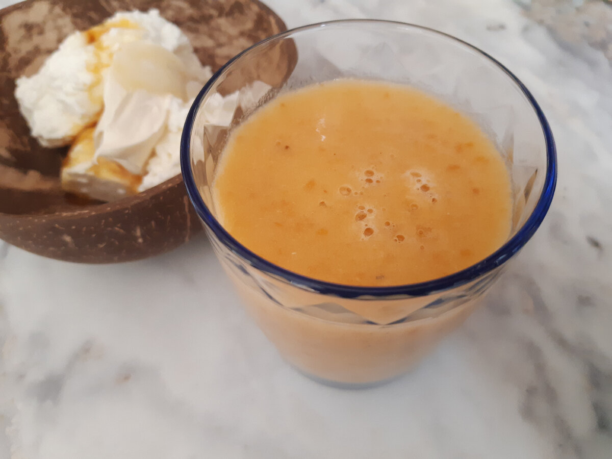 На вкус смузи абрикосовый, кабачок не чувствуется совершенно, но дает нужную плотность, объем и питательные вещества. Такой смузи выпьют даже те, кто терпеть не может кабачки - потому что он их тут не обнаружит никогда👌