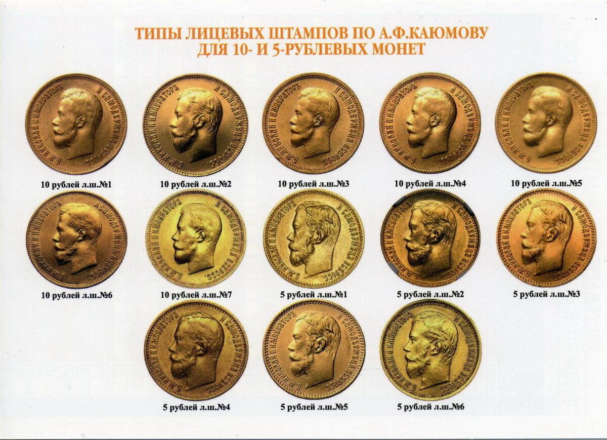 В дополнение к ранее опубликованным материалам и просто для справки публикую таблицу лицевых штампов, она облегчит идентификацию золтых монет времени правления Николая II