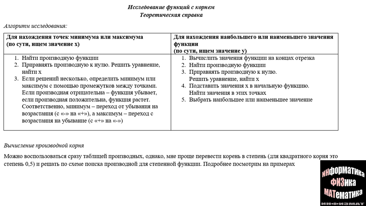 Исследование функций с корнем в №11 ЕГЭ математика профильный уровень. Алгоритм исследования, нахождение производной. Разбор.