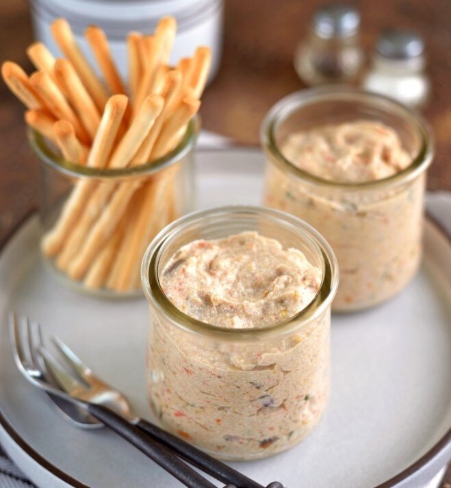 Ингредиенты Разогрейте в сковороде растительное масло без запаха, выложите в него нарезанный мелким кубиком репчатый лук, обжарьте его минуты 3-4. Нарежьте болгарский перец крупными кусочками, добавьте в сковороду, сделайте тише огонь и жарьте еще минуты 3 Спустя время нарежьте баклажаны крупным кубиком, добавьте в сковороду вместе с раздавленным зубчиком чеснока, обжарьте минуту-другую. Баклажаны сразу же впитают все масло, поэтому влейте немного питьевой воды, накройте сковороду крышкой и тушите на тихом огне минут 5-7. Вода должна испариться, а овощи станут полностью готовыми. Если хотите готовый паштет однородного состояния, баклажаны тогда нужно почистить от кожуры, но мне больше нравится с нею. Теперь готовые овощи посолите и поперчите по вкусу, добавьте нарубленную петрушку и зиру, перемешайте, подержите на сковороде еще минуту. Овощи остудите. Переложите готовые овощи в блендер, добавьте обезжиренный творог. Пробейте все ингредиенты до однородного состояния. Я пробиваю, остав