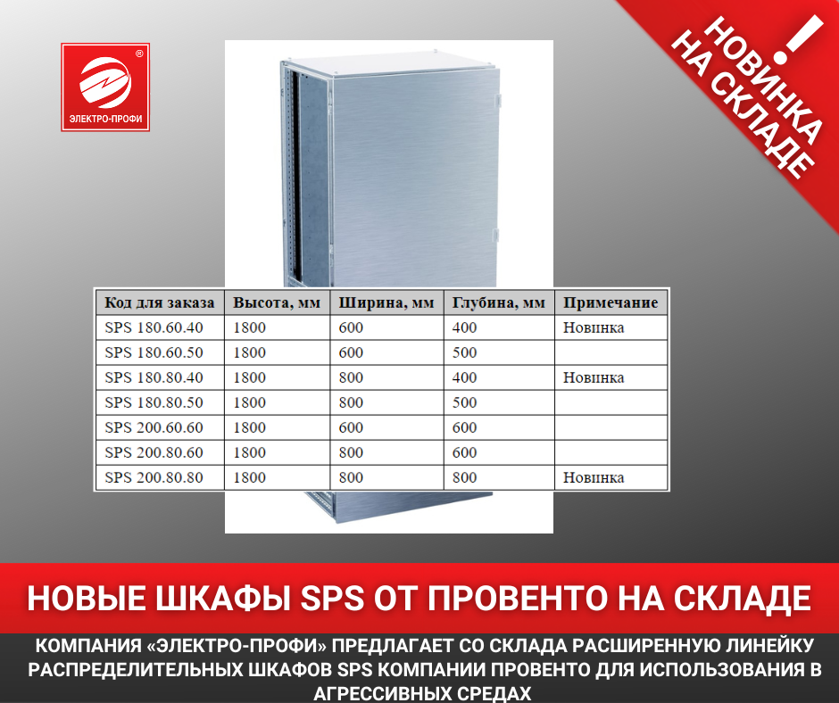 Компания «Электро-Профи» предлагает со склада расширенную линейку распределительных шкафы SPS компании ПРОВЕНТО для использования в агрессивных средах.