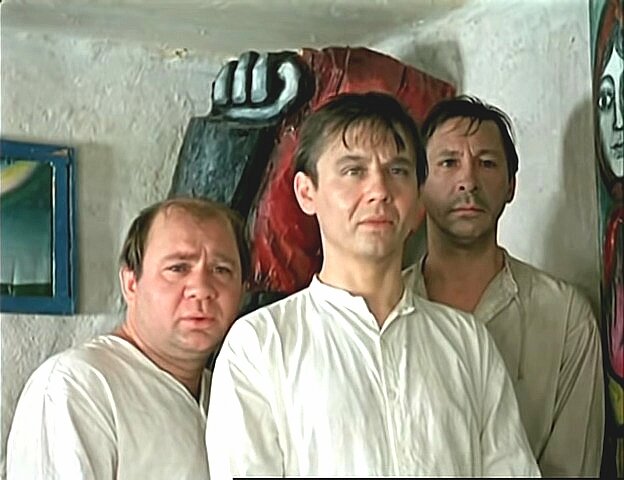Маляра Федора в фильме играет Олег Ефремов. Роль у него небольшая, молчаливая, может даже показаться, что он глухонемой. Но есть у него пара реплик и песню он подпевает. Это такой, типа, из шукшинских "чудиков", как сельский Колька-скульптор из "Странных людей". А молчит он потому как роль его служебная, показать, что власть походя расправляется с неофициальным искусством. Что тут говорить -то.