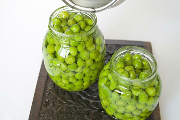Для консервирования подбираются молодые, мягкие горошины. Перезревший горох даст некрасивый мутный оттенок готовой провизии и по вкусу будет слишком крахмальным. Зеленый горошек без стерилизации Для заготовки следует подготовить 3 пол литровых баночки. Для этого их следует вымыть содой и простерилизовать минут 7 с помощью чайника. Такое малое количество банок не выгодно стерилизовать в духовке. На этот рецепт консервированного гороха пойдет 1 литр обычной холодной воды. Вкус консервации будет очень схож с магазинным, а все благодаря правильным пропорциям сыпучих: 3 ст. ложки сахара, 1 ч. ложка лимонной кислоты, 3 ч. ложки соли. Порядок консервирования: Извлечь зеленные горошины из стручков и промыть водой из-под крана. Из заданного объёма сыпучих (соль, сахар) и воды готовят маринад. Консервация гороха в домашних условиях не предусматривает стерилизацию банок с содержимым, поэтому в кипящий маринад засыпают горох и варят его 15 минут. По окончанию процедуры добавляют лимонную кислоту.