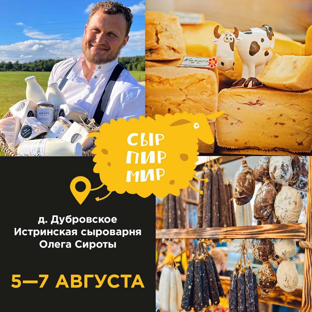 Друзья, уже совсем скоро пройдет наш Всероссийский гастрономический фестиваль «Сыр!Пир!Мир!»! Целых три дня, с 5 по 7 августа на нашей сыроварне под Истрой более 300 фермеров, сыроваров и виноделов будут вкусно кормить и поить всех гостей. Вы сможете попробовать и купить натуральную фермерскую продукцию: сыры, мясные деликатесы, мед, конфеты ручной работы и многое другое. Все дни фестиваль будет открыт с 10 утра и до 8 часов вечера. Вход свободный!