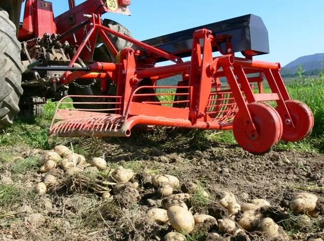 Наряду с рисом, пшеницей и кукурузой, картофель является самой распространенной и востребованной сельскохозяйственной культурой. В российских условиях этот овощ позволяет обеспечить продовольственную независимость, поэтому очень любим дачниками, фермерами и огородниками. Однако ручной сбор урожая картошки – это настоящее мучение, избежать которого позволяет картофелекопалка для минитрактора. Устройство это интересует многих, и если вы для сбора картошки уже приобрели минитрактор, картофелекопалка должна стать следующей покупкой. Но прежде, чем ее совершить, не мешает знать, какую картофелекопалку выбрать: грохотную или транспортерную. Попробуем ответить на этот вопрос. Грохотная картофелекопалка Это буксируемое за трактором или мотоблоком устройство, которое с помощью активного или статического лемеха подрезает почву, загребая клубни на решетку (по-научному – «грохот»). Грохот трясется, тем самым очищая картофель от грунта. Далее картофель выбрасывается в образовавшуюся борозду, где ег