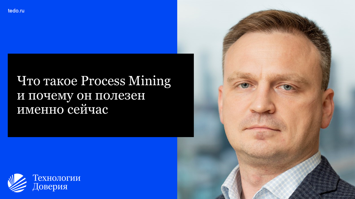 26 июля фирма «Технологии Доверия» (ТеДо) совместно с Т1 Консалтинг провели бизнес-завтрак «Переход на отечественные решения в сфере Process Mining». Директор технологической практики ТеДо Григорий Борисенко рассказал о реалиях рынка Process Mining в 2022 году. Делимся тезисами выступления. Что такое Process Mining? Process Mining или процессная аналитика — это технология автоматизированного анализа 100% цифровых данных о процессе. Она позволяет увидеть, как бизнес-процесс работает на самом деле, чтобы затем найти слабые места и улучшить его. Как это работает? Особенно заметные результаты технология Process Mining показывает в: Для чего используется Process Mining? Процессная аналитика помогает решать задачи бизнеса в сложных и изменяющихся условиях: сокращать трудозатраты, увеличивать скорость процессов, экономить, снижать риски и выявлять мошенничество. У нас были такие кейсы. За счет автоматизации мы помогли клиентам на 10% снизить трудозатраты на создание и обработку заказа. Также