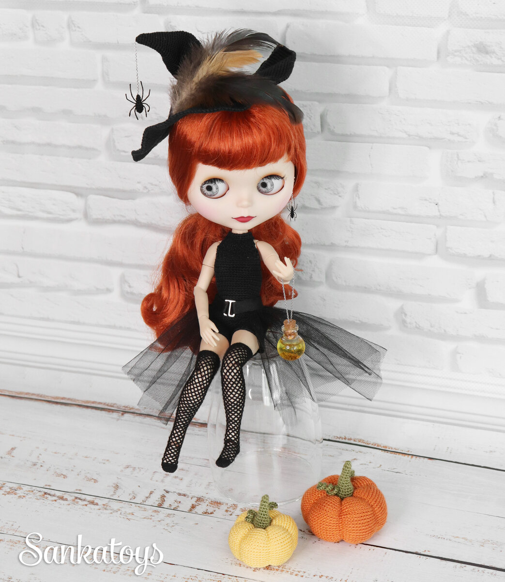 Образ к Хэллоуину - ведьмочка 🎃 Как же моей рыженькой малышке идет такой образ!!! Хэллоуин еще нескоро - но зато у вас есть время порадовать своих куколок подобным нарядом 😉 МК вы найдете здесь - МК наряд для Блайз «Ведьмочка» - но я считаю, что наряды для куколок вязать достаточно сложно (особенно детали из тонкой пряжи), поэтому беритесь только если у вас есть опыт. ЧУЛОЧКИ в мк не входят. Все элементы отдельные - комбинезон по фигурке, накидка-юбочка, чулочки и шляпка. Чулочки крепятся сзади к шортикам - так они надежнее сидят на ножках и придают кокетливости. Мне очень нравятся миниатюрные паучки на тоненькой цепочке-паутинке - на шляпке покрупнее, и совсем крошечный в виде сережки.