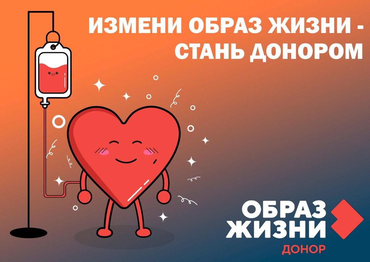 Стань донором! Донорство крови — это гражданский долг и стиль жизни. Многие известные люди в Европе — общественные деятели, звезды кино и эстрады, сами являются донорами и активно пропагандируют и поддерживают развитие донорского движения в своих странах. Доноры — разные люди с разными судьбами, но похожи одним. Они спасают жизнь, отдавая ради этого свою кровь. Миллионы людей обязаны своей жизнью тем, кого они никогда не видели — донорам, которые добровольно сдают кровь, не получая за это какого-либо существенного материального вознаграждения. Ежегодно в России в переливании крови нуждаются 1,5 миллиона человек. Очень часто кровь требуется пострадавшим от ожогов и травм, при тяжелых родах или при проведении сложных операций, больным онкологическими заболеваниями. В клиниках, где проводятся операции на сердце, на одно лечебное место необходимо 12—15 литров в год! Некоторым людям компоненты и препараты, помогающие свертыванию крови, нужны в течение всей жизни. Мы склонны думать, что когд