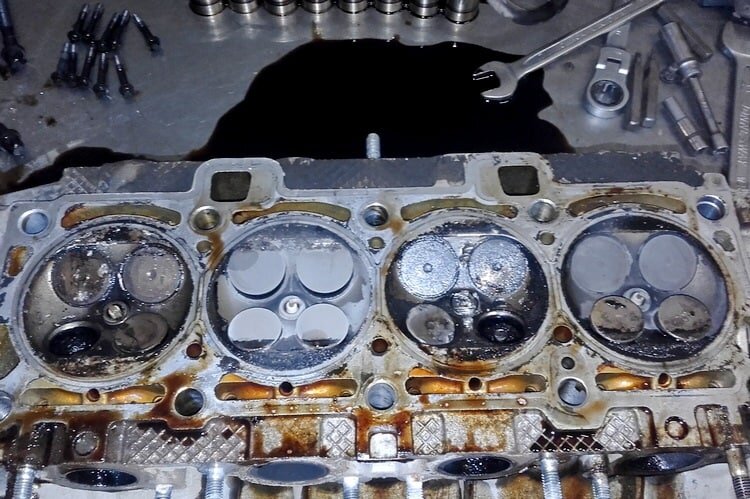 Разрушенный металл легко определить «на глаз». Если признаки есть, нужно снимать ГБЦ и самостоятельно менять клапана. Работа непростая, но без нее не обойтись.