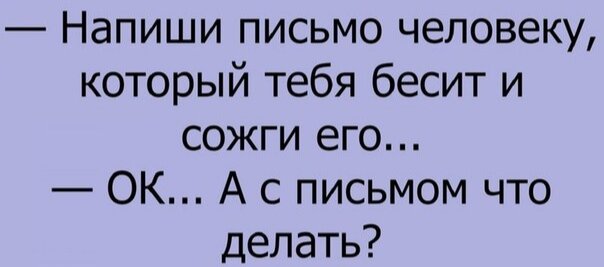 Один из самых эффективных способов экологично прожить чувства и эмоции, выплеснуть наружу всю настоящую правду. Именно письма позволяют забыть о том, что "ненавидеть грех, девочки не ругаются, оскорблять нельзя, и вообще я такая всепрощающая и всепонимающая святая, которая агрессию не имеет право испытывать", зато агрессия имеет свойство испытывать вас, особенно подавленная, особенно болезнями и самонаказаниями. Если чувство пришло, оно есть. Каким бы оно ни было, вы имеете на него право. Значит так произошло. Просто садимся за стол и пишем письмо: конкретному человеку, всему миру - не важно. Расскажите бумаге как вам плохо, что вы на самом деле чувствуете, как вам больно, как вы злы. Это нормально, вы живой человек, разрешите своим внутренним драконам выйти прогуляться. Это полезнее, чем сжимать пружину внутри себя, которая рванет в любой момент. Ненавидьте, плачьте, кричите бумаге обо всем "капслоком". Вы почувствуете погружение и в какой-то момент остановку, будто написали все и