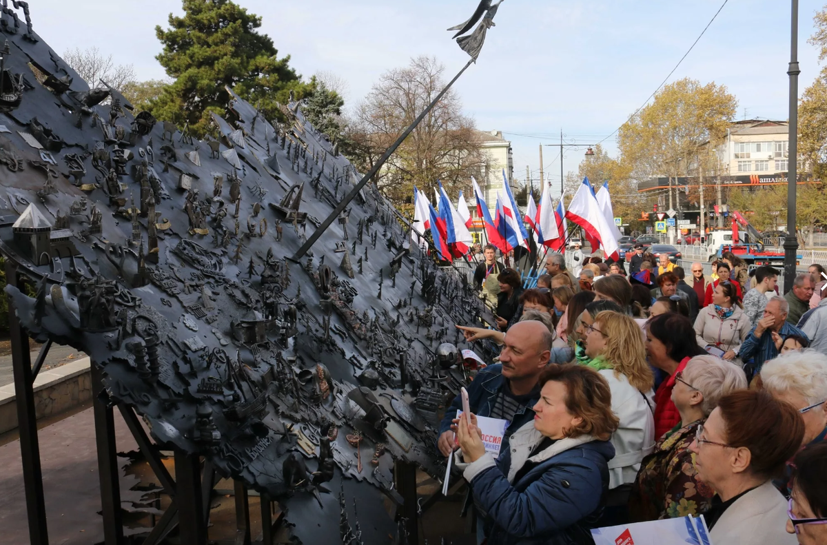 Года три назад, вернее, четыре года назад, как раз во время проведения Всероссийского конкурса кузнецов, открыли в центре Симферополя, в парке Тренева большую 10 метровую карту России. Карта представляла собой 10мм нержавеющий (как утверждали организаторы) металл, с плазменной резьбой по контуру. На карте были изображены различные достопримечательности российских регионов, для справки еще и номера регионов тоже указаны. Видимо, для того, чтобы народ мог различить из какого региона к нам гости приехали. И вообще, довольно познавательно разглядывать карту и угадывать достопримечательности. Конечно, самая большая кучность этих примечательностей образовалась на западе России, что и объяснимо. Есть там для меня несколько странных особенностей, которые я до сих пор разгадать не могу, но об этом я чуть позже напишу. Через пару лет нержавеющая сталь начала покрываться каким-то странным коричневым налетом, напоминающим окислы металла. Ну не может же нержавеющее железо взять и вот так на гл