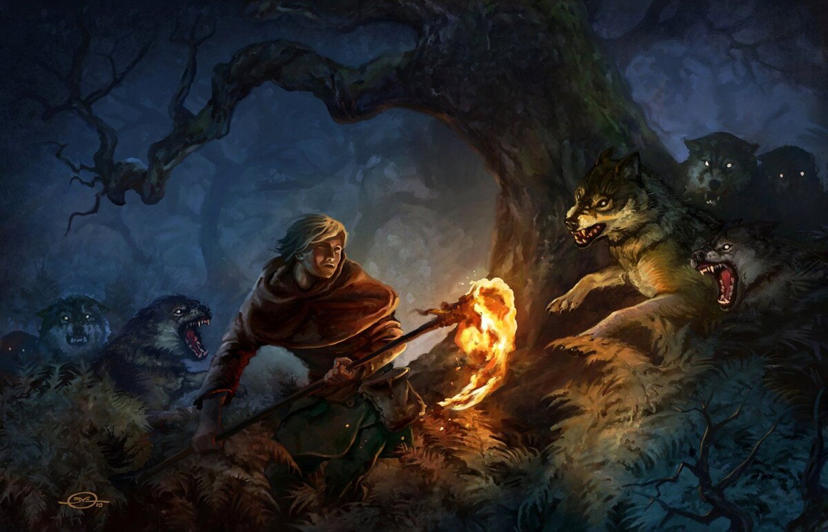 И когда он решил применить ментальную способность - ту, что использовал на стоящем за дверью мальчике, лес огласил закладывающий уши рёв. Тот монстр, скрывающийся в тени между деревьев, напал на группу тёмных теннов, преследующих беглеца Эренвара Грейнхольда. Только не там, откуда его ждали. Фардос со Стархом думали, что монстр нападёт из-за деревьев и, разумеется, создали круговую оборону, но то, что на них нападут сверху - не ожидал никто. Сорвавшись откуда-то сверху и метнувшись стрелой вниз, гигантский оборотень - мохнатое человекообразное тело с головой водка и размером с буйвола, смел группу воинов как кегли в боулинг от удара шаром. Минус двое из числа оставшихся в живых, а дальше это число продолжало увеличиваться. Фардос наконец взял себя в руки, поняв, что от его действий зависит собственная жизнь и жизнь подчинённых. Он ловко махал секирой словно фехтовальной шпагой, которая со смертоносным свистом рассекала воздух, готовая уничтожить все на своём пути, вот только оборотень был ловчее и раз за разом в последний момент ускользал от оружия Фардоса, унося с собой в тень жизнь очередного воина. Через полминуты мелькнувшая среди деревьев тень снесла когтистой лапой полчерепа Старху вместе с его шлемом, и тут Фардос с ужасом понял, что остался один на один с оборотнем.