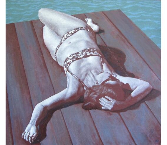 Комментирует куратор галереи Горбунова Мария: "Работа напоминает старый полароидный снимок, немного выгоревший на солнце. Фокус внимания сосредоточен на фигуре. Мы не видим глаз, выражения лица. Опрокинутая перспектива, непринужденность сложенных ног и отброшенной руки создает ощущение небрежности позы". Картина - будто впечатление от момента или воспоминания, кадр из памяти, который у любого из нас может вызывать различные прочтения и ассоциации. Отдых в деревне у бабушки? Воспоминания подросткового периода? Возможно. Образование: Белорусский государственный театрально-художественный институт. Член Союза художников России. Выставочный опыт: В активе художника 37 групповых и 5 персональных выставок в Москве, Санкт-Петербурге, Краснодаре, Сочи, Германии и США. Работы художника Корчагина Олега находятся в коллекциях: Сочинский художественный музей; Чувашский государственный художественный музей; Краснодарский краевой выставочный зал изобразительных искусств; а также в частных коллекция