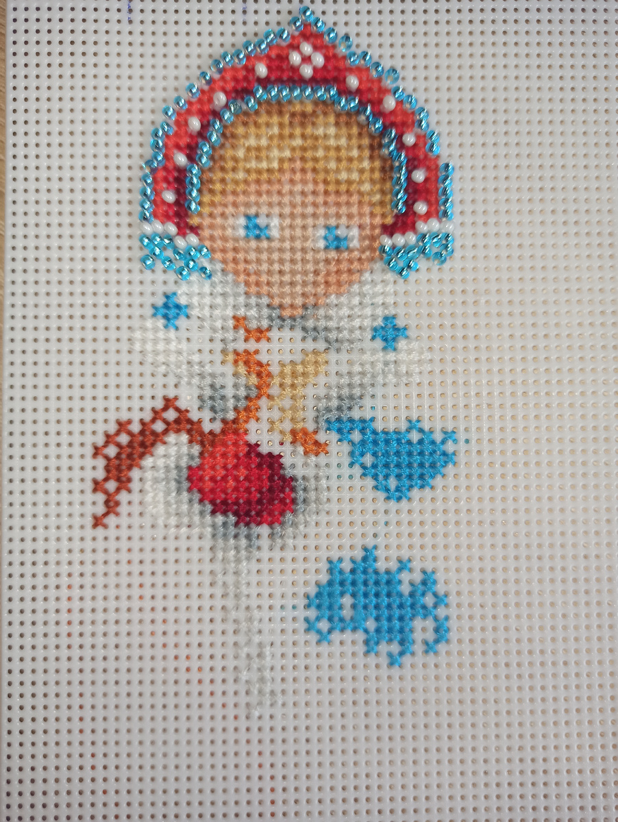 Что-то я не показала свою Снегурочку)) просто прелесть получается)) готово уже 25% вышивки. Процесс идёт легко, особенно когда пришиваю бисер. Подумываю над тем чтобы начать ещё процесс с бисером. В запасах у меня есть пара икон от #Panna и бабочка от #Вдохновение . Работа идёт) #вышивкакрестом #вышиваютнетолькобабушки #явышиваю #моелюбимоехобби #варкулевнаикрестики #ялюблювышивать #МПСтудия #вышивканапластиковойканве
