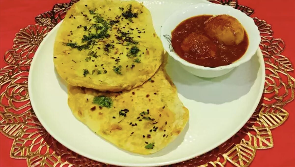 Ингредиенты: пшеничная мука, творог, растительное масло, сливочное масло, соль, сода, разрыхлитель, сахар, семена калонджи, кинза, молотый кориандр, сливочное масло, картофель, репчатый лук, чат масала, молотый кумин, свежий зеленый чили, тертый имбирь, молотый красный чили, порошок манго Рецепт: Вкусная Амритсари Алу Кулча получается хрустящей и мягкой, ее фаршируют отварным картофельным пюре и специями. Она похожа на Наан. Это настоящее пенджабское блюдо. Время приготовления: 45 мин.
