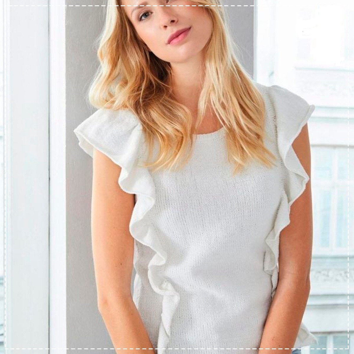 Белоснежный топ с вертикальными волнами спицами. Описание работы.