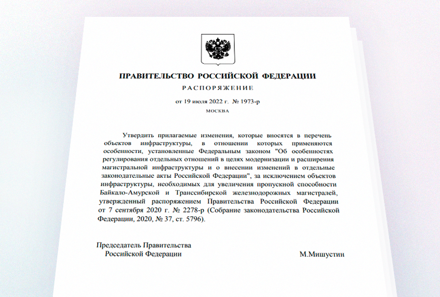 Председатель Правительства Михаил Мишустин подписал Распоряжение от 19.07.2022 № 1973-р о расширении перечня объектов инфраструктуры, строительство или реконструкцию которых можно вести по упрощенным процедурам.