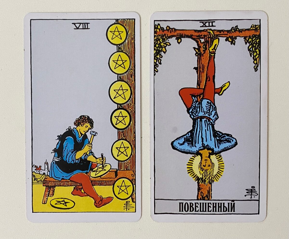 Всех приветствую на своем канале! Меня зовут Виктория и я увлекаюсь гаданием на картах Таро. Я точно знаю, что они могут помочь посмотреть на различные ситуации, приоткрывая занавес и дадут совет, что можно сделать. Следовать им или нет, это решение остается за самим человеком. А теперь перейдем к самим картам и их трактовке :) И не забудьте поставить ❤️ и подписаться на канал, чтобы не пропускать полезные расклады)) Карта Дня - 8 Пентаклей. Сегодня у вас день возможностей, в которых вы обязательно достигните успеха! Смело беритесь за новые проекты, повышайте свою квалификацию, знания и навыки, чтобы добиться мастерства в той сфере, которой работаете, ведь вы с этим справитесь успешно, а еще и вознаграждение за труды будет хорошим) Единственное, не стоит переоценивать свои силы и брать на себя слишком много задач и хлопот, лучше выделить для себя наиболее важные задачи и сосредоточиться на них, а не браться за все сразу)) Тогда успех не заставит себя ждать. Карта Совет - Повешенный. Н