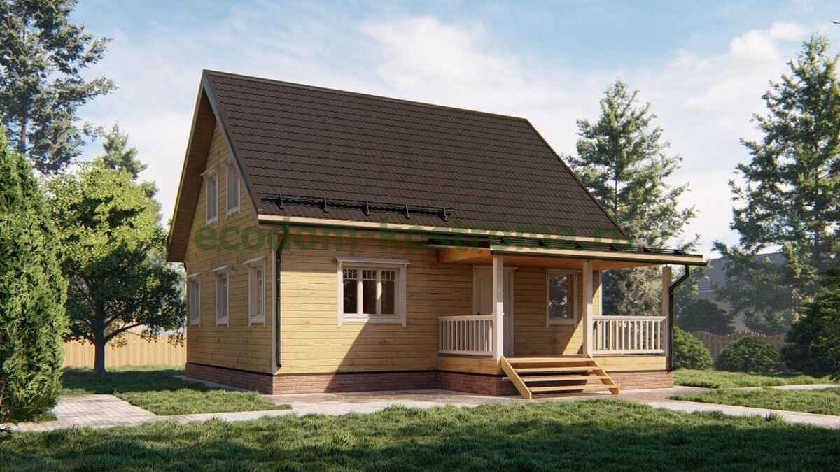 Комплектация дома из костромского бруса с мансардой под усадку включает в себя: