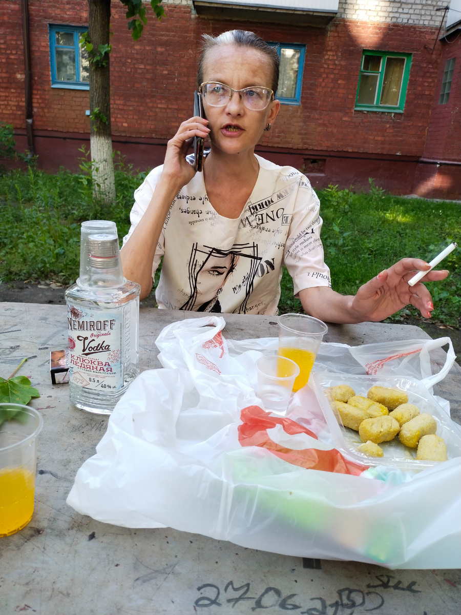 Купил бутылку, фанту и она ещё и закуску взяла (нагетсы). В пятерочке спросил ее можем сесть у нее дома, что мы как подростки на лавочке будем сидеть. Она сказала, не вариант. Мама может прийти и будет кричать. Во дворе удобно за столиком можно посидеть. Спросил а как же менты? Пока не было такого ответила она. На том и порешили.