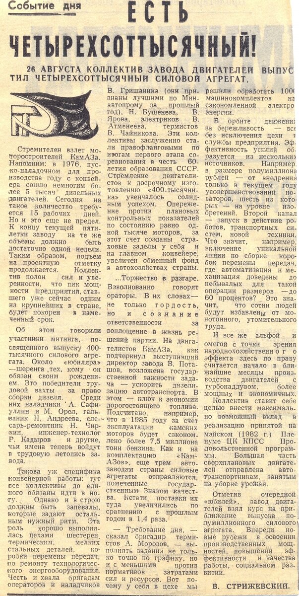 Внизу публикация из газеты «Рабочий КАМАЗа» от 1 сентября 1982 года.
