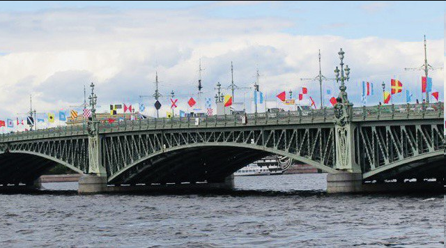 В честь праздника Дворцовый и Благовещенский мосты оформили флагами: на каждой переправе развеваются более 400 полотнищ. Свыше 130 флагов украшают ограждения Троицкого моста.