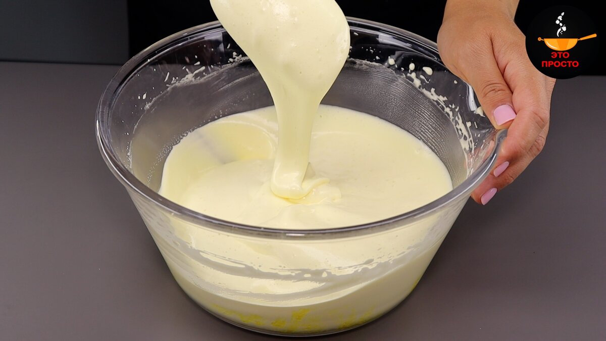 Сегодня предлагаю приготовить вот такой потрясающе красивый и вкусный пирог с абрикосами. Самое оригинальное в этом рецепте – это вид, пирог очень похож на яичницу. Лёгкий, нежный, в меру сладкий, он просто идеален для летнего чаепития! СПОСОБ ПРИГОТОВЛЕНИЯ: Начнём приготовление с бисквита. В миску разбиваем 3 яйца, добавляем щепотку соли, 90 г сахара, и 1 ч.л. ванильного экстракта. Взбиваем 2-3 минуты до посветления и пышности. Теперь просеянную муку, разрыхлитель и крахмал смешиваем вместе и высыпаем в яичную массу. Соединяем жидкие и сухие ингредиенты с помощью лопатки, аккуратными, но уверенными движениями снизу-вверх, чтобы сохранить воздушность. Далее 1 ст.л. растительного масла выливаем в 30 мл молока комнатной температуры, перемешиваем и вливаем в тесто. Снова перемешиваем лопаткой. Бисквитное тесто готово. Форму смазываем сливочным маслом, чтобы не скользила бумага для выпечки и переливаем тесто. Размер моей формы 22х30 см. Равномерно распределяем тесто и ставим выпекаться в з