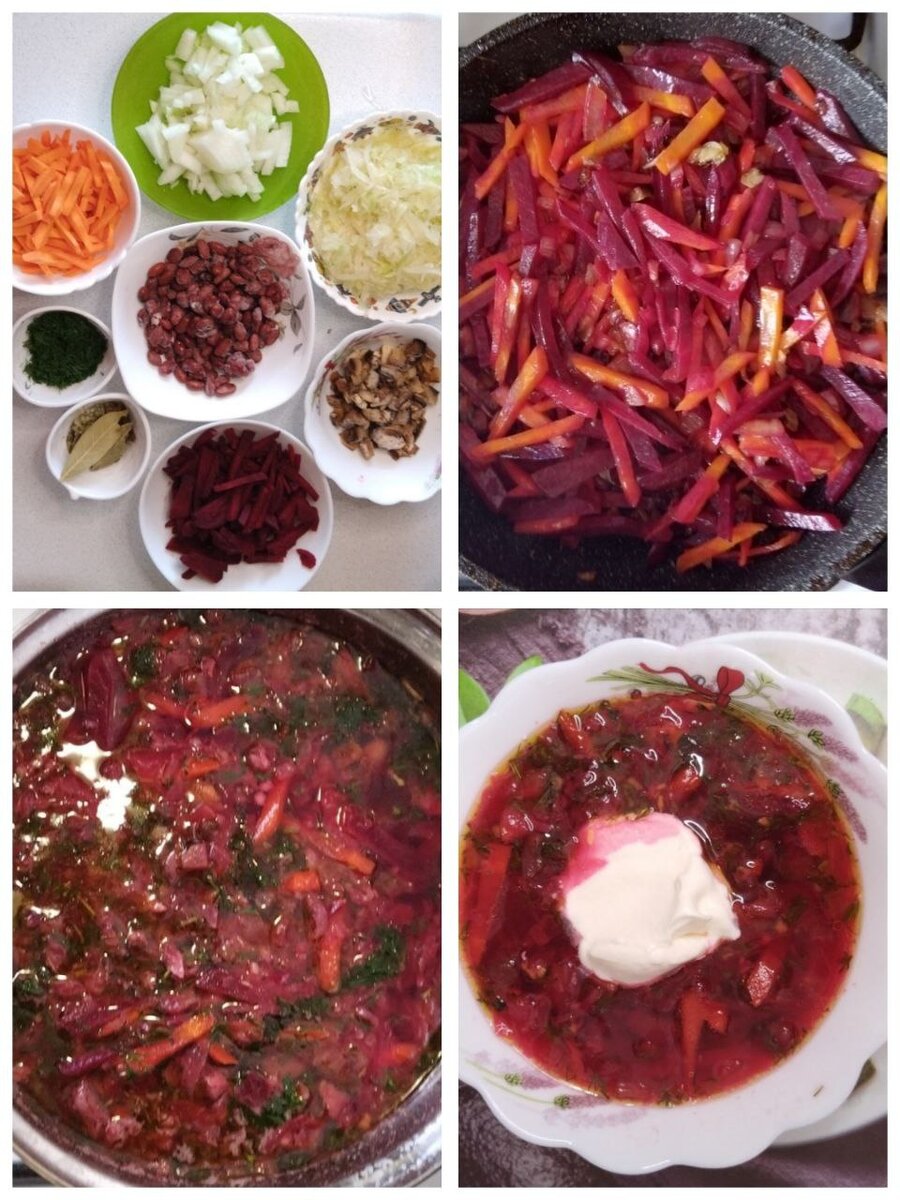 Готовим просто, по ленивому) Сегодня выходной, а значит надо пополнить холодильник готовыми блюдами. Во главе стола сегодня веганский борщец без картошки с фасолью и грибами. Фасоль у меня заранее отварена и заморожен по порциям. Достал, бросил и готово. Грибы тоже замораживаю, уже мелко по резаные. И капуста тоже из морозилки, как то осталась, я её и заморозила. Варить я все просто бросаем фасоль капусту. Тушим лук, грибы, морковь, свёклу. Добавляю немного уксуса, что бы сочный цвет был. Смешиваю все ингредиенты, немного довариваю, но стараюсь что бы овощи были альденте, немного хрустящие. Добавляю чесночек, укроп, лаврушку - борщец готов. Добавить сметанки и наслаждаться. Следующее блюдо был паштет печёночный из свиной печени. Оказалось - просто и вкусно. Печень. лук, масло сливочное. Потушить и измельчить блендером. Ну и мой ужин на 4 дня стали фаршированные перцы. Правда чтобы снизить углеводы делаю просто фарш с луком. Тушу в сметанном соусе. Целых 4 дня мой ленивец