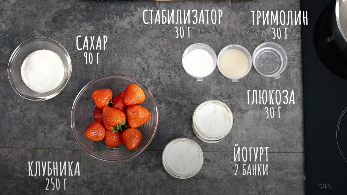 Пока другие страны бьют температурные рекорды этим летом, Россия не отстаёт: аномальная жара прогнозируется в нескольких регионах. Спасаться от зноя можно разными способами: прятаться в тени, охлаждаться под кондиционером или плавать в бассейне. Мы рекомендуем более простой способ — домашнее мороженое: со свежей клубникой, но без красителей и консервантов. Приготовить его гораздо проще, чем кажется. Из техники вам понадобится только блендер. А вот какие ингредиенты нужны: Йогурт 4% — 2 баночки Клубника — 250 г Стабилизатор — 30 г Тримолин — 30 г Глюкоза — 30 г Сахар — 90 г Тримолин, глюкозу и стабилизатор можно найти в кулинарных магазинах. А домашний йогурт и свежую клубнику — на Московских ярмарках. Многие делают мороженое из сливок, но можно выбрать более простой вариант. Летом хочется чего-то лёгкого и свежего, поэтому в рецепте используется йогурт с жирностью 4%. Такой производит Истринская сыроварня Олега Сироты: все йогурты варят по уникальному рецепту южных славян, первых произ