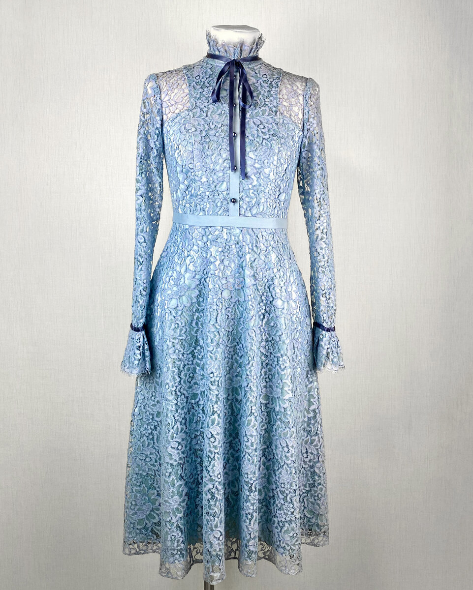 Главная на свадьбе, конечно, невеста, но каждой женщине хочется чувствовать себя самой красивой, и неважно - подружка это или… мама! Догадались? Все верно, это платье мы сшили для мамы невесты! Идею нам подарил образ Кейт Миддлтон. На одном мероприятии она появилась в кружевном платье от бренда Temperley London. Правда, мы внесли свои правки и, конечно, более тщательно потрудились над деталями, ведь платье Кейт - из готовой коллекции. Мы же создавали свое, имея на руках 5-метровый отрез роскошного французского кружева, с которым могли делать все, что пожелает душа. Елена - заказчица - очень хотела расклешенный фасон. Вставки, как у Кейт, на мой взгляд, все же упрощают модель, а вот крой по косой портит кружево, нарушая логику узора. Мы обошлись и без того, и без другого. Как? Открою секрет: мы кроим по долевой, но разводим лекала так, что фалды закладываются на юбке одинаково равномерно и орнамент при этом сохраняет направление. Также мы отказались от вставок в лиф. Не было смысла п