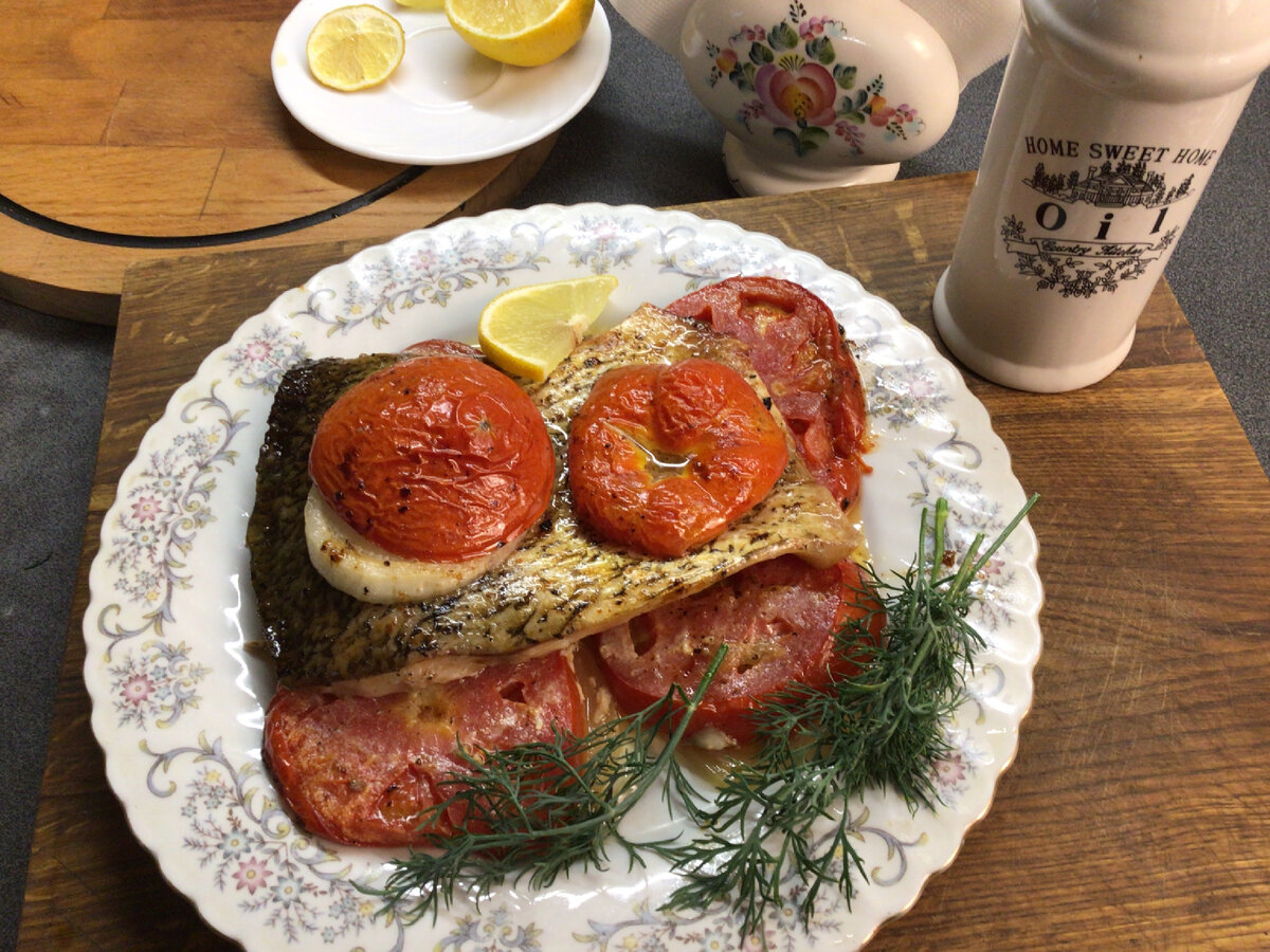 Рыба, запечённая в духовке под луково- томатной ‘ шубкой’, очень вкусная и сочная