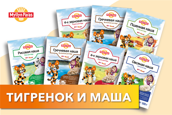 Myllyn Paras продолжает многолетнюю миссию по воспитанию культуры правильного питания в семье. С июля 2022 года герои мультфильма «Маша и Медведь» появятся на упаковках каш суббренда «Тигренок» финской торговой марки Myllyn Paras. Дизайнерское решение направлено на привлечение внимания молодых родителей к полезным и здоровым продуктам в питании детей. Myllyn Paras продолжает многолетнюю миссию по воспитанию культуры правильного питания в семье. Каши «Тигренок» Myllyn Paras - основа полезного и здорового питания для всей семьи. Консистенция каши нежная и мягкая, благодаря бережно обработанным хлопьям. Высокое содержание пищевых волокон способствуют пищеварению и хорошему настроению, дает энергию и чувство сытости надолго. В ассортиментной линейке 5 видов каш – овсяная, гречневая, пшённая, рисовая, мультизлаковая, изготовленных из высококачественного зерна, расплющенных в тонкие хлопья. Из хлопьев варят вкусную и питательную кашу, которую дети называют «каша с тигренком», а для диетическ