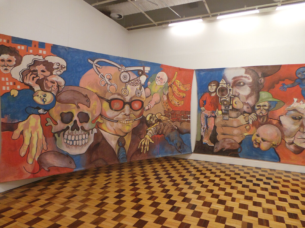 И там огромное полотно с крысами Вторая половина полотна а в отеле, где мы живем, в номере сейчас у нас вот такая картина Гуляли по городу. За прекрасным гаучо церковь А за мной ничего особенного, зато я в четверг еще гуляла в платье. К вечеру пошел дождь и потом так похолодало! +4 и мы, наконец-то одели теплые вещи, которые я тащила через всю страну! Городская администрация. В Крузалто живет меньше 70 000 гаучо Эта католическая церковь в сквере у отеля цветет и осыпается Жакаранда В четверг мы послушали и посмотрели все, что нам предлагали. Устали, конечно, сильно. Ведь фестиваль -- это новые песни. Все песни новые! И тексты и музыка и воспринимать это утомительно