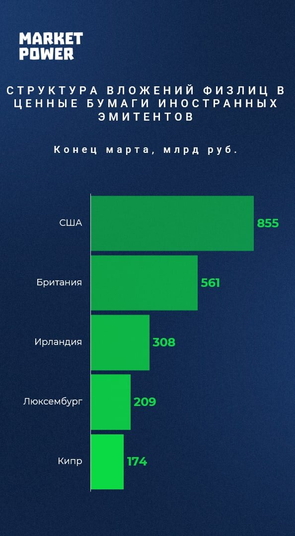 Банк России рассказал про структуру портфелей частных инвесторов 💰По состоянию на конец 1 квартала частные инвесторы-неризеденты владели акциями на сумму ₽8 трлн, что на 19% больше уровня прошлого года. 🧐В акции и облигации вкладывали почти поровну – 46% и 42% соответственно. Почти 64% было инвестировано в бумаги российских эмитентов: ₽2,5 трлн в акции и почти ₽2 трлн – в облигации. 😉На иностранные ценные бумаги приходится чуть больше трети вложений граждан (₽3 трлн). В топе – США (27%) и Великобритания (13%). Однако сейчас уже наблюдается тенденция по сокращению инвестиций в иностранные бумаги.