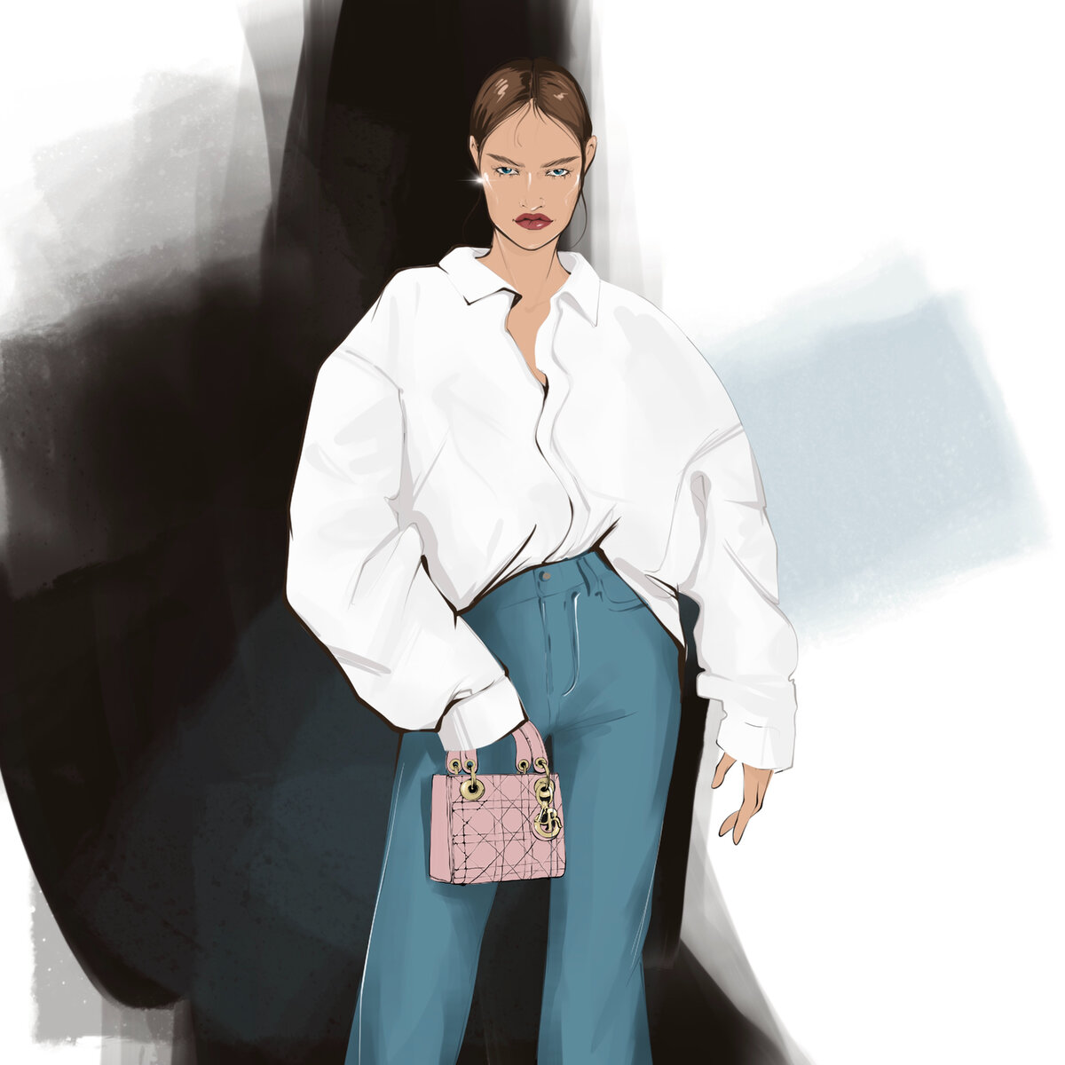 Чтобы всегда выглядеть стильно и модно, достаточно одного элемента — белой рубашки. Она, как белый холст для художника, на котором можно каждый раз создавать множество эффектных и запоминающихся образов: от классических до ультрамодных. Делимся, как найти идеальную рубашку и с чем ее носить. Самое главное — выбрать правильную модель, которая станет универсальной базой вашей всесезонной капсулы. Откажитесь от устаревшей приталенной блузы и навязчивого декора в пользу прямого и свободного кроя в мужском стиле. Лучшее сочетание с рубашкой для повседневного аутфита — хорошо сидящие на вас джинсы, будь то актуальный клёш с боковыми разрезами или подходящий всем «mom fit» с завышенной талией. Если деним приелся, то присмотритесь к прямым брюкам насыщенного цвета или широким палаццо. Очертите линию талию, заправив рубашку только спереди. Носите такие комплекты со светлыми кедами или яркими босоножками на каблуках, чтобы сделать акцент. Пара рубашка + юбка давно вышла за пределы офисного дре
