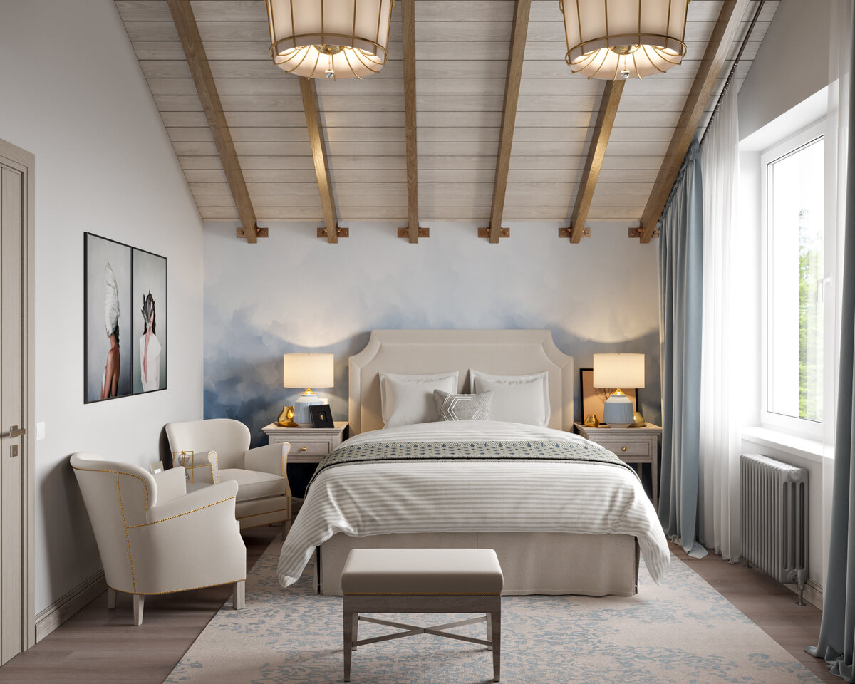 Гостевая спальня в доме из нашего проекта #интерьер_объект_жуковка. Чем гостевая спальня в доме отличается это основной? Может отличаться размерами. Но... По дизайну она должна быть продолжением темы дома. И по функционалу – лучше, чтобы стала полноценной комнатой. Например, часто слышу от заказчиков, что не нужно в гостевой спальне делать шкаф. С моей точки зрения - это не верно. Даже если комната на несколько дней, ваши друзья или родственники захватили с собой одежду для активного отдыха и повседневную одежду. Значит нужен шкаф. Открытая вешалка в этих случаях не спасёт. По моим наблюдениям – со шкафом в комнате будет больше порядка. Так же, считаю, что необходим универсальный стол, выполняющий функции и рабочего стола и трюмо для макияжа. Но – это – по желанию владельцев дома. Если площадь комнаты позволяет – можно поставить и небольшие кресла и чайный столик. Думаю, возникнет только одна проблема. Гости - долго не захотят уезжать.