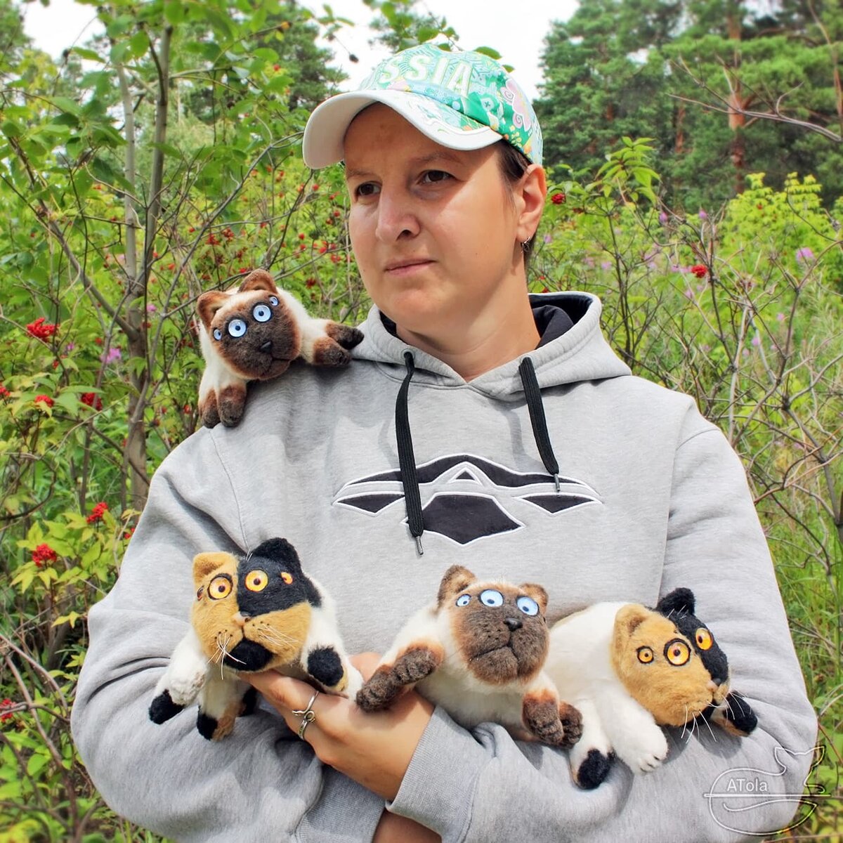 Я, конечно, не мать драконов, но тоже кое-что могу! Принесла вам кото-паучков за последние три месяца. Было еще два, но уже отправились захватывать МИР. Так как один наш любимый пень на аллее немного сгорел, а удобное бревно кто-то уронил, фотографировались на клубничной поляне у реки. Тут полно бузины, иван-чая и котопауков! Гордая мать с восьминогим выводком... Куча пушистых котОфелинок. Ну и наше новое дерево для фотосессий. Приятно, конечно, что у кого-то на улице наконец-то пень горел... но жалко, что это был наш любимый пень! Размах лап где-то 18 сантиметров. Внутри пластиковый скелет и проволока. Чтобы кото-паук мог делать ХОБА! Чем-то же он должен это делать. Остальные материалы: искусственный мех, запекаемый пластик, стеклянные глаза, синтепон. Покрашены масляными красками. Кстати, с пятницей! Будет и на твоей улице пень гореть!