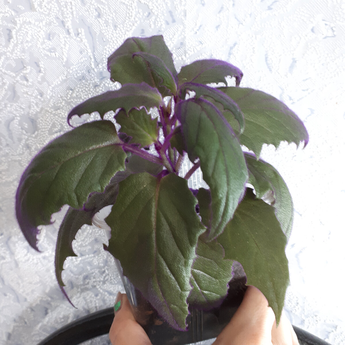 Гинура, листья с фиолетовым бархатом. Цветёт желтыми цветочками, похожими на одуванчики. Даже пушистыми потом становятся.
