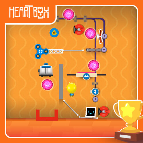 Уберите черно-желтые блоки так, чтобы робот оказался в коробке и затем проверьте решение в игре. А еще можно подписаться на канал, чтобы получать головоломки из Heart Box ежедневно.