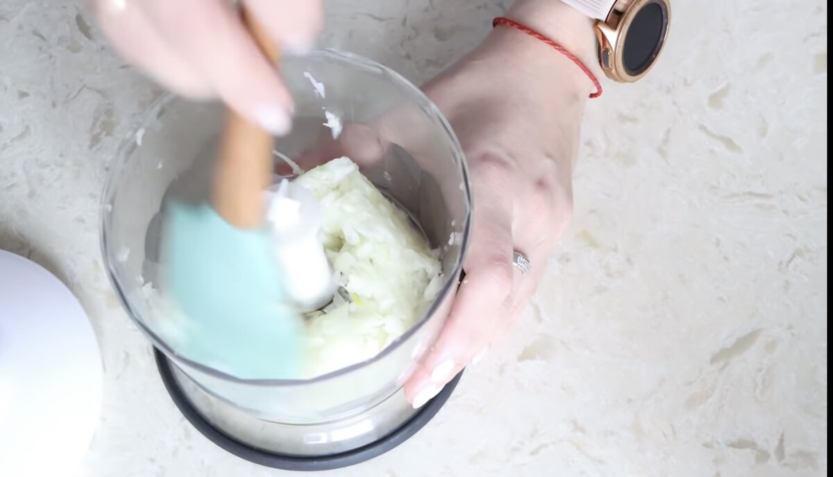 1) Разрезаем лук на 4 части и пропускаем через блендер: 2) Смешиваем лук с куриным фаршем: 3) Отварите булгур или рис и добавьте в фарш: 4) По вкусу добавьте специи: 4) Формируйте тефтели в округлую форму: 5) Смешайте томатную пасту, сметану и крахмал: 6) Залейте кипятком и добавьте специи: 7) Залейте соусом форму с тефтелями: 8) Отправьте в духовку на 35 мин при 180 градусах: 9) Приятного аппетита ❤️ Ингредиенты: 1) фарш куриный-500 г 2) лук-100 г 3) булгур/рис-100 г 4) специи: паприка, перец молотый и сушёный чеснок 5) томатная паста- 2 ст.л. 6) сметана-1 ст.л. 7) крахмал кукурузный- 1 ст.л. 8) кипяток- 300 мл