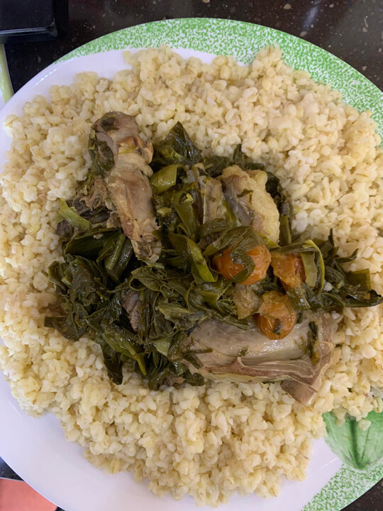 А-ля «плов» для диабетиков. Мясо нарезать, промыть и выложить на сковороду, закрыть крышкой. Воды не добавлять. Когда жидкость выпарится, добавить масло (у меня топленое сливочное), лук, нарезанный произвольно, соль, перец, куркуму, алычу (или вместо нее - лимон или лимонную кислоту). Зелень нарезать довольно крупно, выложить на мясо и тушить под крышкой до готовности. В качестве гарнира (который, конечно, Вы можете выбрать сами) - булгур. Замачивала заранее часа на 2-3. Добавила воды 2 к 1, соль. Довела до кипения, уменьшила огонь. Когда вода выпарилась, добавила кусочек сливочного масла. Приятного аппетита! Больше общения и рецептов - в группе "Рецепты для диабетиков" в ВКонтакте! Рецепт на странице Автор рецепта – Seva Seva H-va