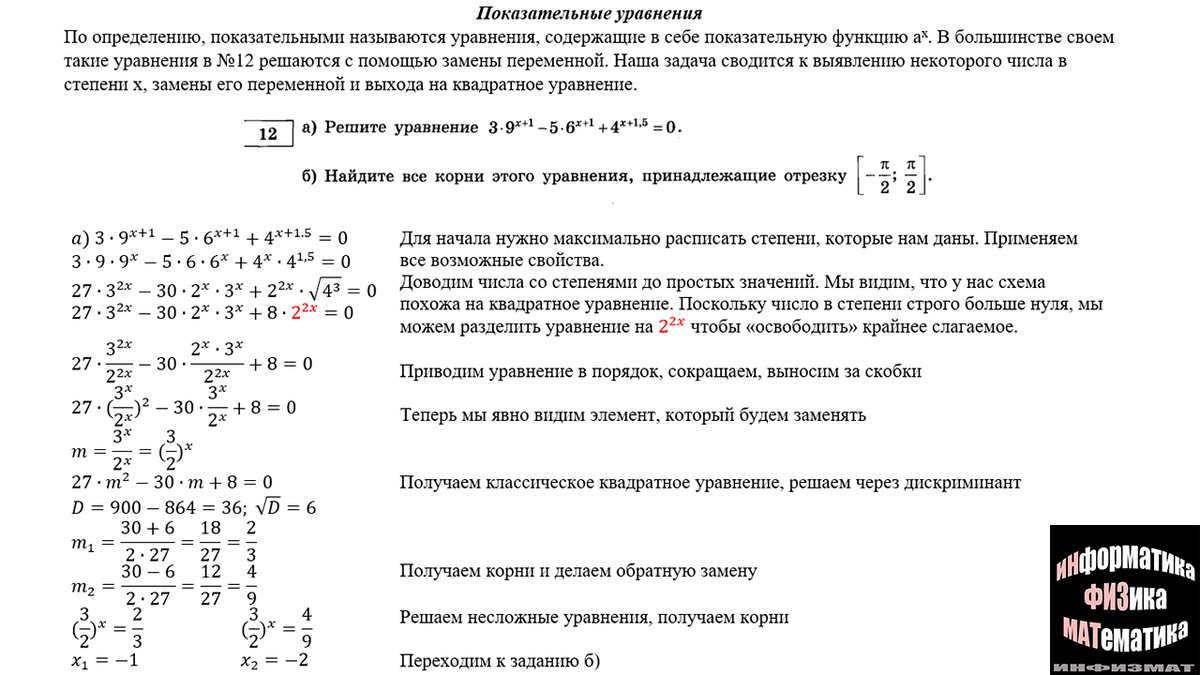 Показательные уравнения в №12 ЕГЭ математика профильный уровень. Разбор примеров