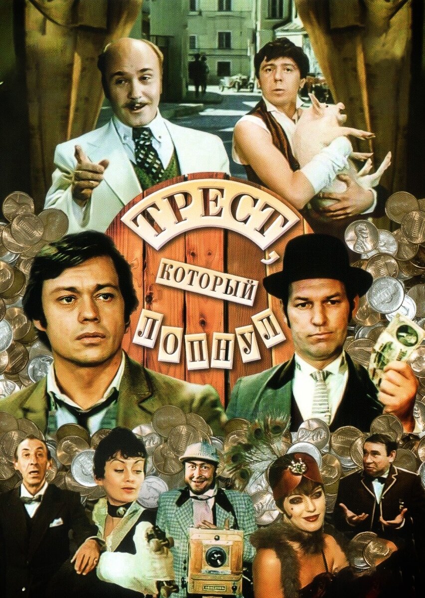 «Трест, который лопнул» — советский трёхсерийный художественный фильм, снятый в 1982 году на Одесской киностудии режиссёром Александром Павловским. Музыкальная комедия по мотивам рассказов О. Генри из сборника «Благородный жулик» (1908). Казалось бы у фильма были все шансы стать суперпопулярным. И опытный режиссёр за плечами которого на тот момент уже пять киноработ (правда из пяти лишь «Ар-хи-ме-ды!» был более-менее известным фильмом ), и замечательный актёрский состав ( Регимантас Адомайтис, Николай Караченцов, Виктор Ильичёв, Всеволод Абдулов, Владимир Басов, Михаил Светин, Леонид Куравлёв и др.), и хорошая литературная основа для сценария, да и сама Одесская киностудия в советские времена считалась неким эталоном, "Знаком качества" - большинство комедий, в т.ч. и музыкальных, а так же приключенческих кинолент снималось именно на Одесской киностудии и когда зритель только видел вот эту заставку: