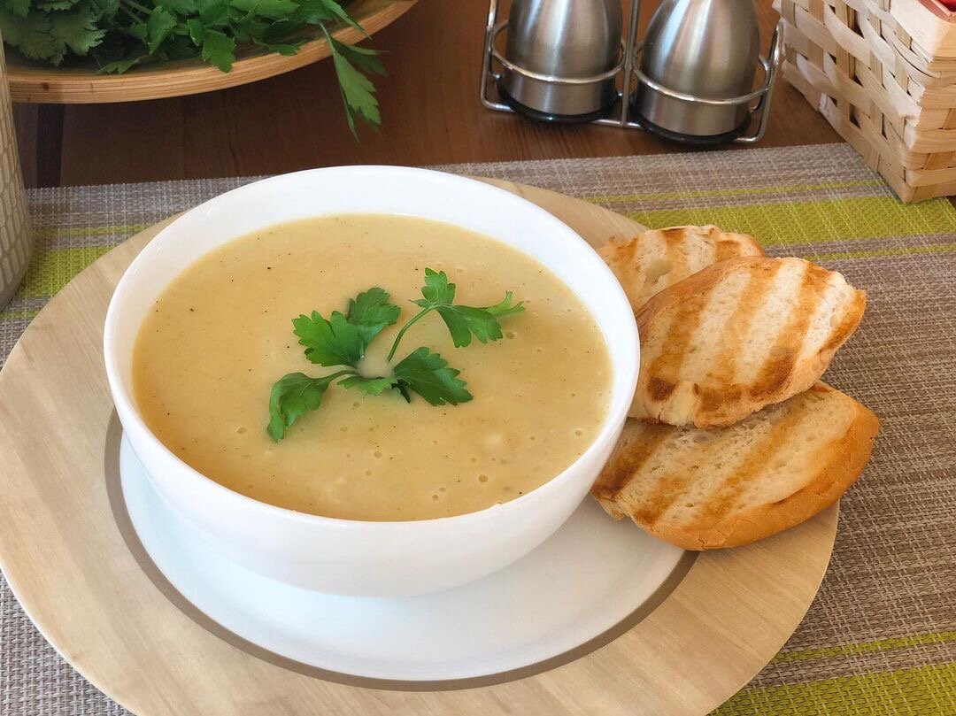 Очень вкусный суп! Многие даже не догадываются, что это суп из кабачков, когда пробуют впервые! Так что наверняка понравится всем, даже тем, кто утверждает, что не любит кабачки) Ингредиенты: Если нет готового куриного бульона - сварить. У меня бульон замороженный, это очень удобно. Иногда готовлю специально концентрированный и замораживаю по 200-400 мл, иногда варю бульон для супа и пару половников замораживаю в контейнерах или пакетах. Очень экономит время, когда нужно сварить суп или добавить бульон к соусу, рагу и т.д. Размораживать предварительно не надо. Лук нарезать полукольцами. Чеснок раздавить ножом. Морковь нарезать кольцами. Картофель и кабачок нарезать брусочками. Лук с чесноком обжарить в кастрюле с небольшим количеством масла. Добавить остальные овощи. Тушить, помешивая, 7-10 минут. Добавить 1 л бульона. Посолить, поперчить. Варить до готовности овощей (примерно 10-15 минут).⠀ Слить бульон, отставить в сторону. Овощи взбить блендером до состояния пюре. Влить сливки. Не
