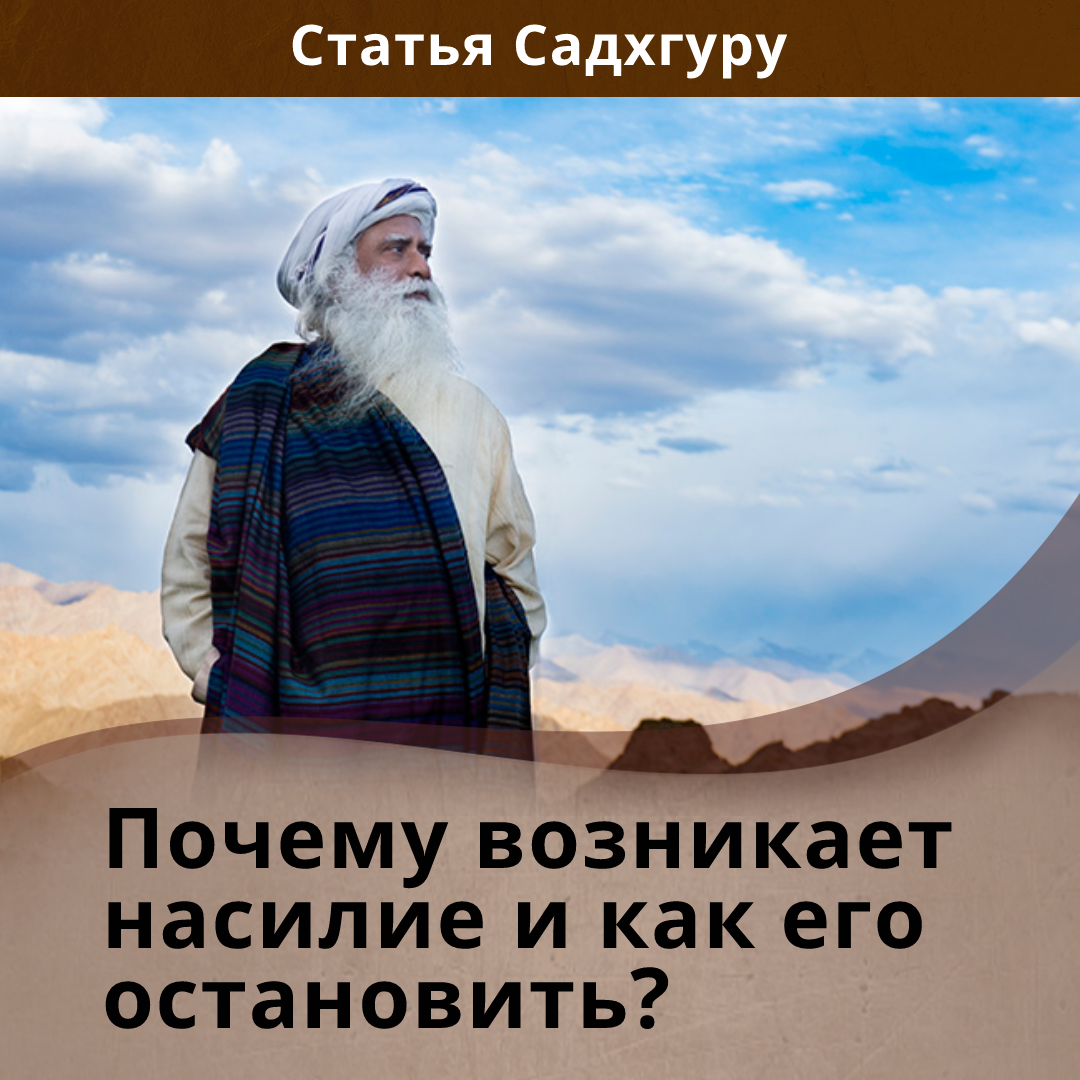На фоне повсеместных случаев насилия, освещаемых в новостных лентах, возникает вопрос: неужели человечество обречено на постоянное существование в состоянии конфликта? Как можно прекратить бесконечное насилие раз и навсегда? Садхгуру рассказывает о способе решения этой проблемы. Вопрос: Что, по вашему мнению, поможет навсегда покончить с насилием? Садхгуру: Несколько лет назад, когда я был в Калифорнии, я увидел наклейку на бампере автомобиля с надписью: «Наш губернатор побьёт вашего». Это реальный показатель того, куда движется культура. Все современные фильмы посвящены тому, как одни стреляют в других. Видеоигры – это, в основном, стрелялки. Если пойти в детский магазин, половина игрушек — оружие. Мы восхваляем войны и умные бомбы, которые могут залететь через окно и убить кого-нибудь. Почти всё в современном мире превращается в насилие. Наша музыка, наши танцы, наша культура, то, как мы двигаемся и действуем в жизни, – всё приобретает оттенок насилия. Не стоит удивляться, если однаж