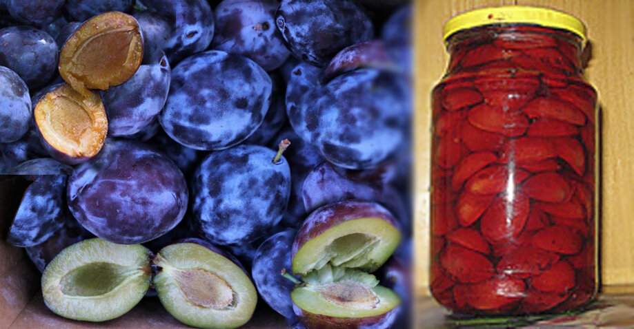 Рецепт сливы на зиму без сахара – как свежая Этот рецепт я придумала в тот год, когда был очень большой урожай сливы. Что с ней делать? Сок не пьём, варенье не едим, вялить и сушить – не тот регион. Выбрасывать жалко – витамины же. Вот тогда я и подумала – в заготовки мы используем кислоту. А у сливы своя кислота. Собрала сливу в тот момент созревания, когда косточка легко отделяется от мякоти. Промыла сливу, разрезала на половинки, удалила косточки. Подготовила банки – простерилизовала над кипятком (можно в микроволновке). Простерилизовала металлические крышки. Сложила половинки слив в банку срезом вниз. Банки должны быть ёмкостью не больше 800 мл. Иначе слива не прогреется полностью, и желе не получится. Тем временем поставила чайник кипятиться. На стол положила толстое полотенце, и приготовила ещё одно толстое полотенце. Когда вода закипела, я залила сливу в банке крутым кипятком и укупорила крышкой. Поставила банку на толстое полотенце и накрыла вторым полотенцем (можно не покрыва